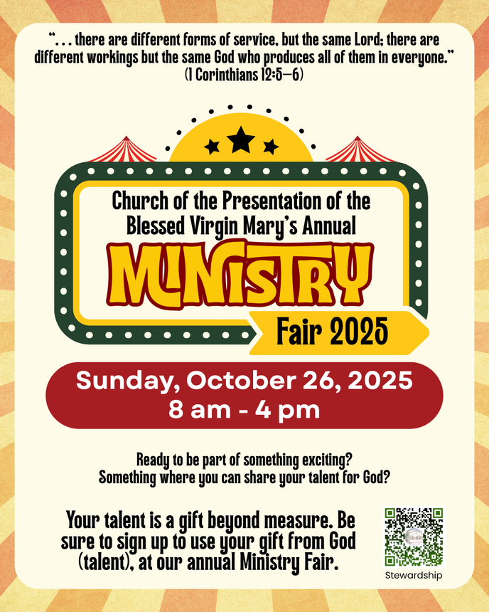 We are a welcoming Catholic community called by God to live out the message of Christ in love and service to all people. As a parish, let us proclaim the Gospel of Christ to our community in word, deed, and truth.