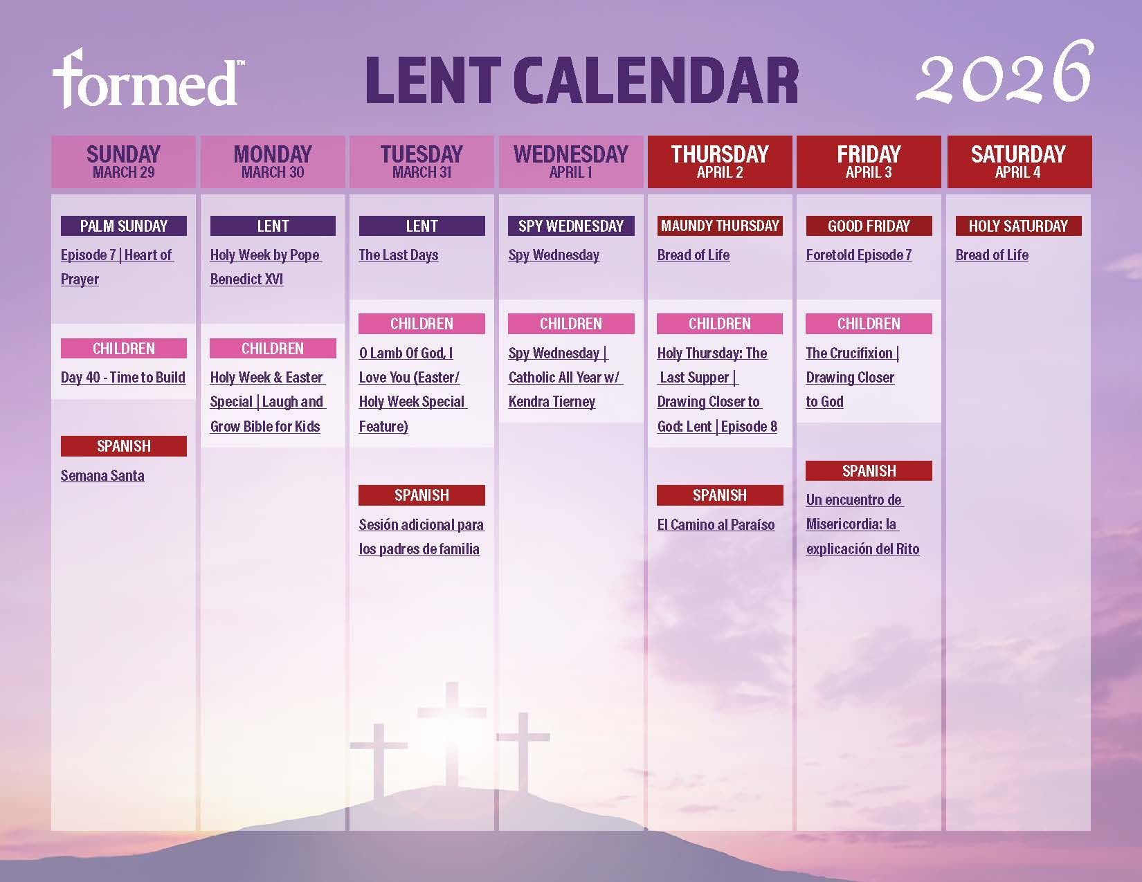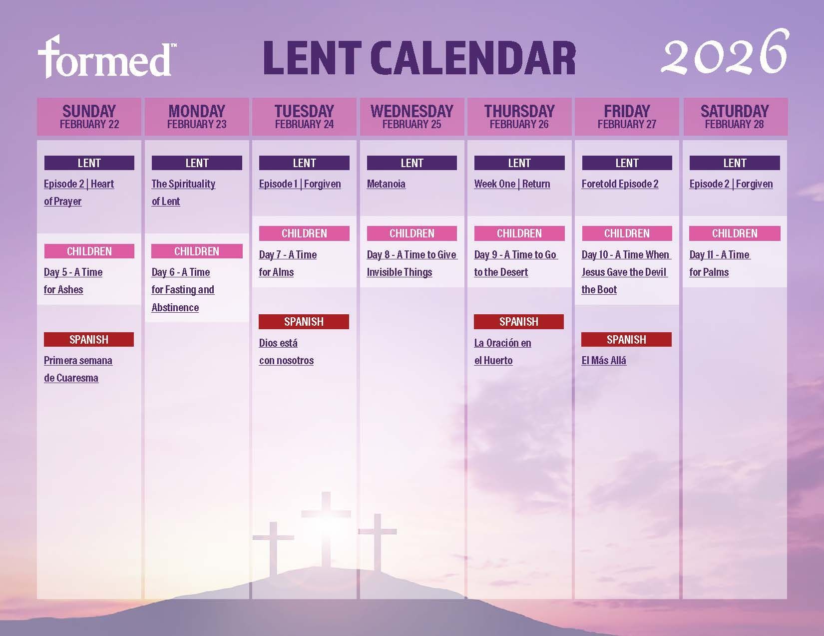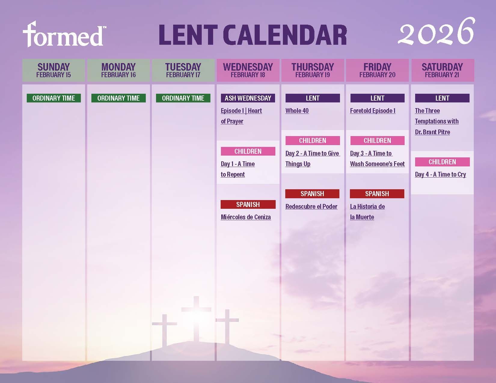 Lent 2026 starts on Ash Wednesday, February 18, and lasts until the beginning of the Evening Mass of the Lord's Supper on Holy Thursday.